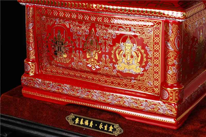 這款【佛光普照】產(chǎn)品,采用的是“錯金銀”工藝,它是中國非物質(zhì)文化遺產(chǎn)名錄的一項美麗的藝術(shù),源自于“春秋戰(zhàn)國時期”至今已經(jīng)2000多年,把這種精湛工藝運用到我們永生盒,既是傳承,亦是發(fā)揚!產(chǎn)品上的圖案源自藏傳佛教的“唐卡”寓意永登西方世界,是生命的輪回不止,代表著中國傳統(tǒng)佛教的美好寓意。尺寸:300x230x210mm