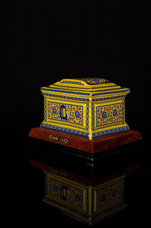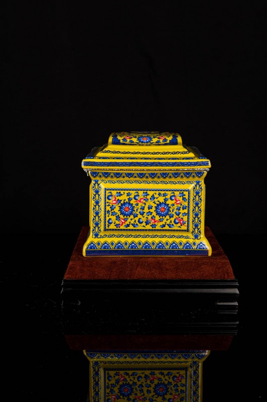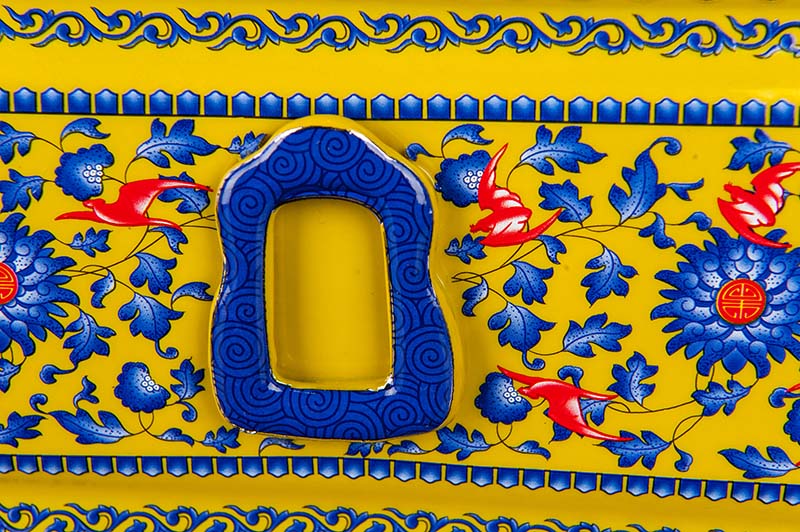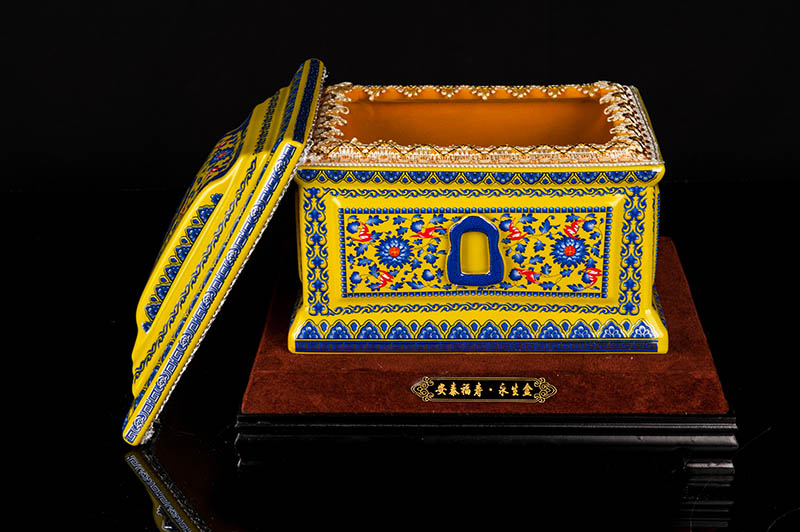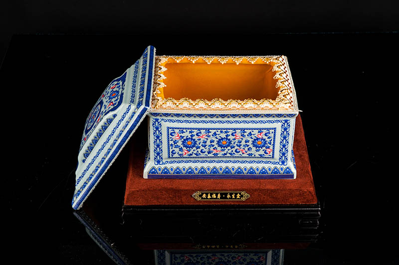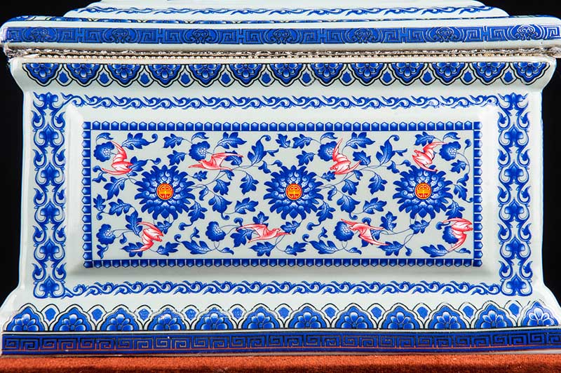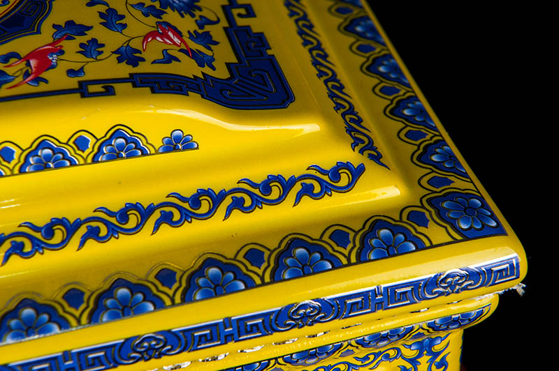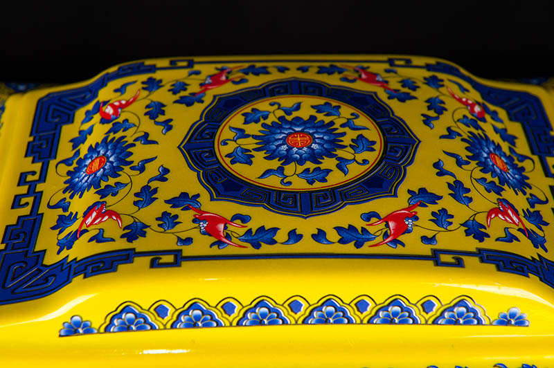 這款【福在眼前】產(chǎn)品沿用我們瓷都“景德鎮(zhèn)”具特色的青花,還有古代皇帝才能用的黃色作為底色,“纏枝蓮”、“蝙蝠”、“永生花”作為點(diǎn)綴,整體給人感覺(jué)特別典雅以及文藝。產(chǎn)品上繪上“蝙蝠”(寓意福到)盒“永生花”(寓意生命的永恒、眼睛的形狀)顧名思義“福在眼前”。尺寸:300x230x210mm