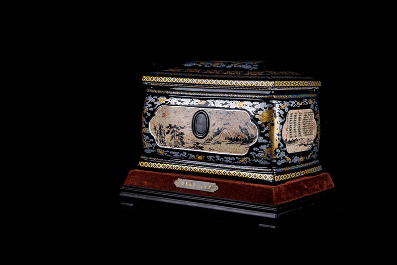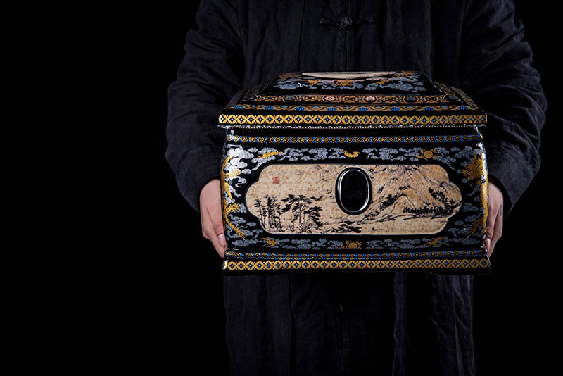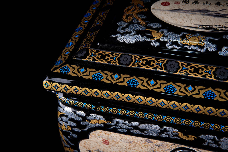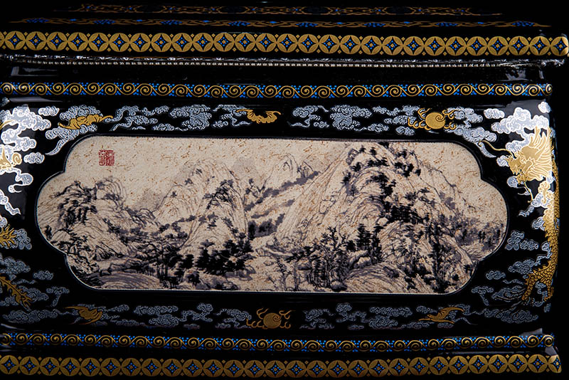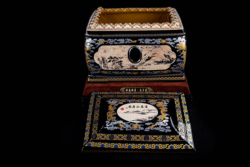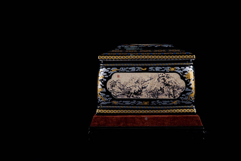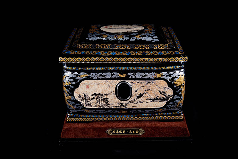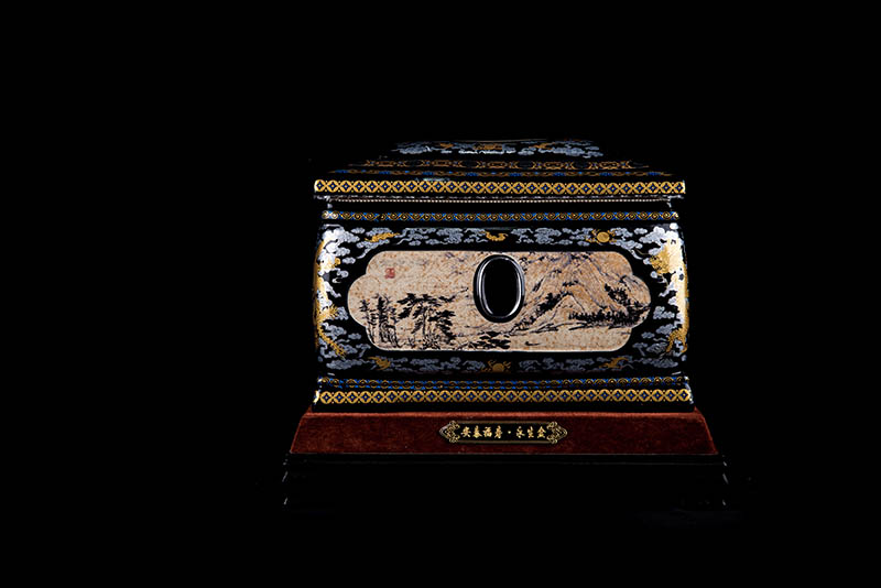 景德鎮(zhèn)安泰福壽陶瓷有限公司,永生盒系列之《富春山居圖》:本款產(chǎn)品是與浙江省杭州市桐廬殯儀館共同開發(fā)設(shè)計,采用中國十大傳世名畫之一《富春山居圖》作為主要背景,配之以“祥云”、“龍鳳”,“蝙蝠”加以點綴,圖案以浙江省富春江作為背景,80%為桐廬境內(nèi)富春江景色,富春山居圖被譽為“畫中之蘭亭”,對于桐廬殯儀館而言,這更是一種家鄉(xiāng)情懷,表達(dá)了對于藝術(shù)不懈的追求,也是桐廬人民引以為傲的佳品。尺寸:340x230x250mm