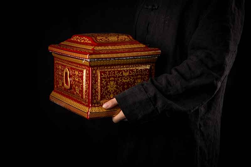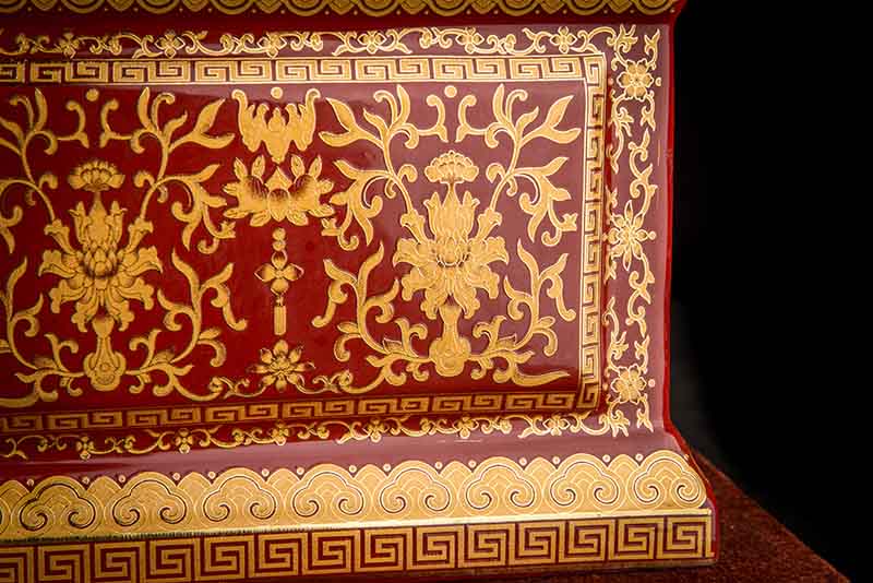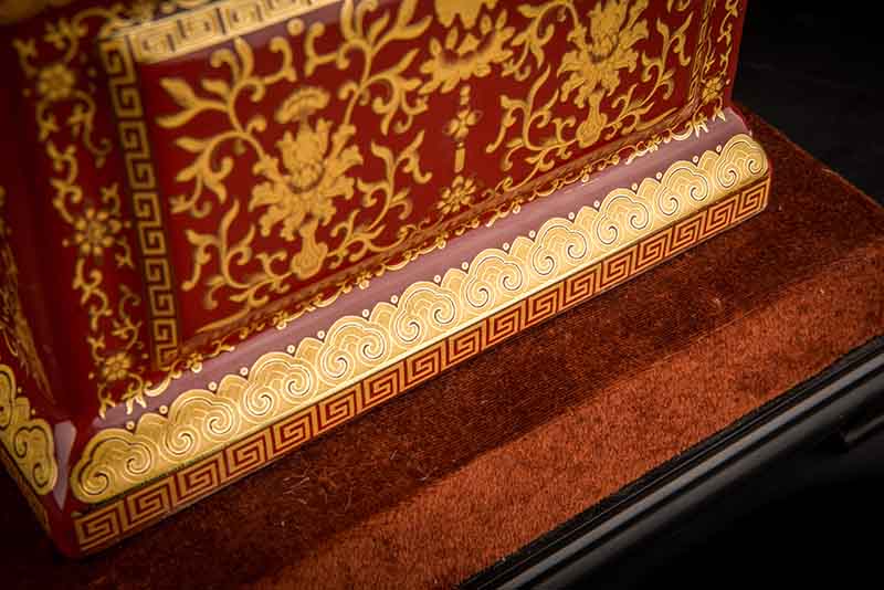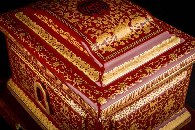這款【吉祥如意】系列產(chǎn)品,目前有幾種顏色釉系列,黃、藍(lán)、紅、以及黑。這款產(chǎn)品運用中國古代傳統(tǒng)的吉祥紋飾—“纏枝蓮”?!袄p枝蓮”常運用在陶瓷作為點綴,因其結(jié)構(gòu)連綿不斷,故又具“生生不息”之意,同樣保后代代代繁榮。尺寸:300x230x210mm