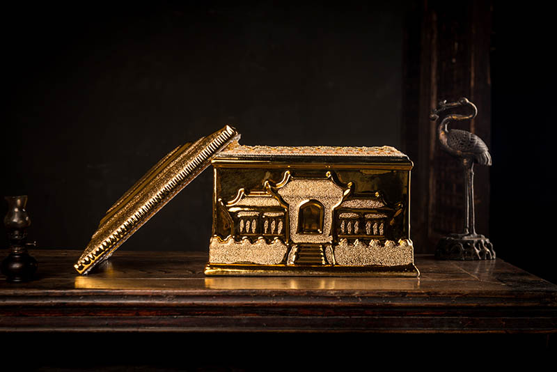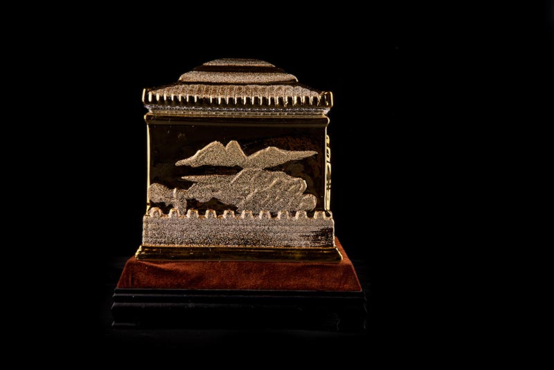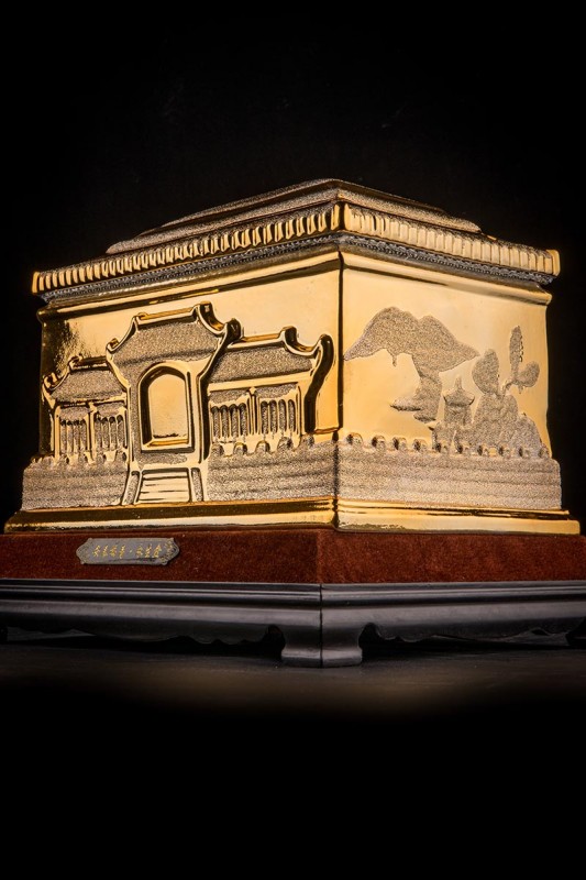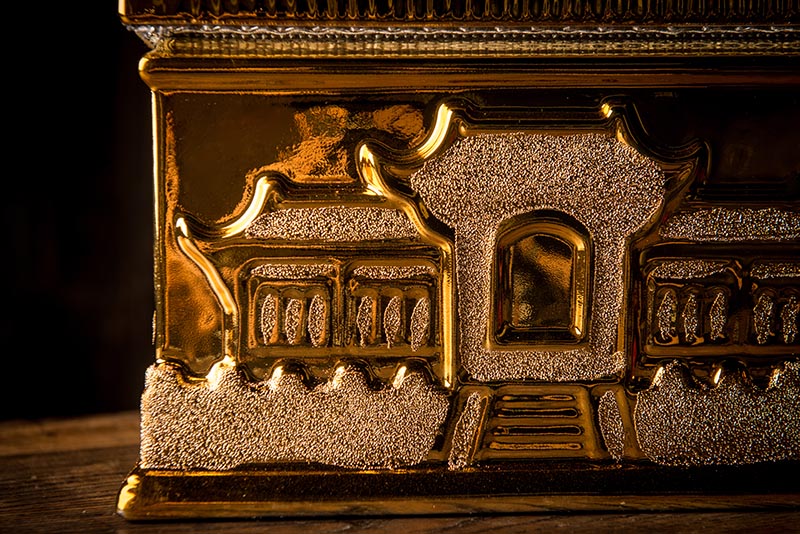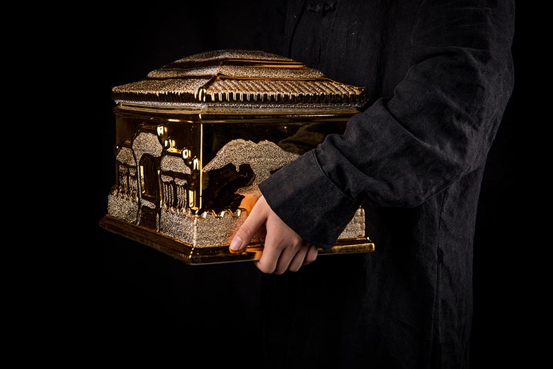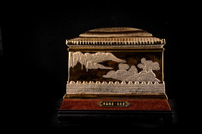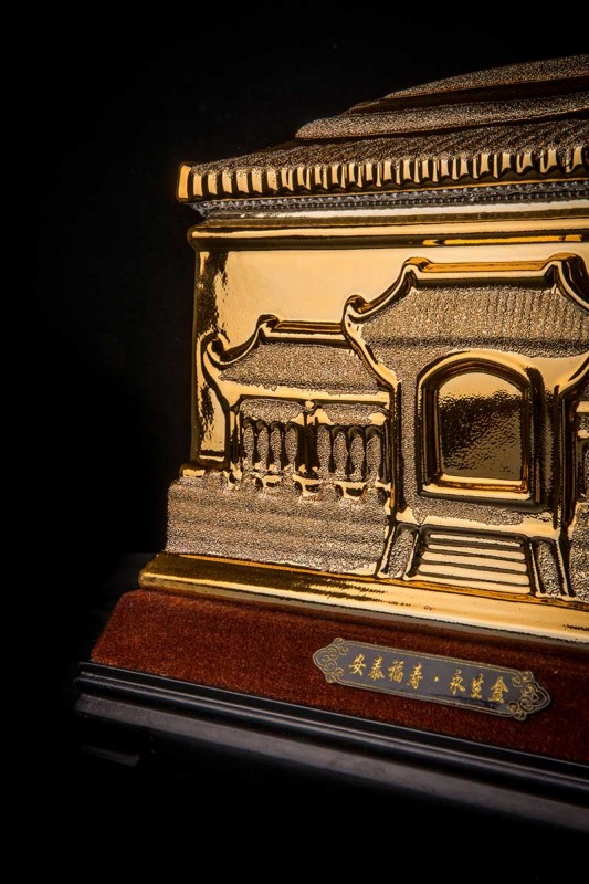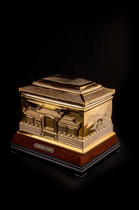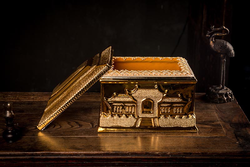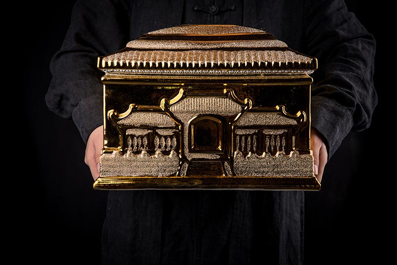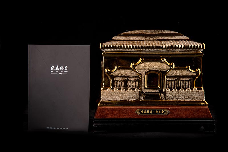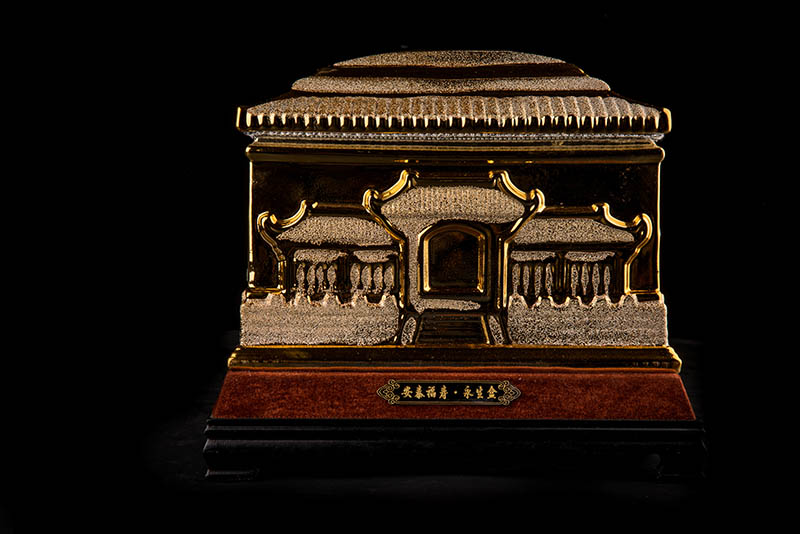 這款【磨砂金金寶盒】整體質(zhì)感出眾,看上去就是富麗堂皇,大氣,同樣是1300高溫煅燒,既有磨砂金的質(zhì)感,又有陶瓷那種光滑如肌的觸感,檔次,品質(zhì)自然而然就能很好的凸顯。這款【磨砂金金寶盒】正面是故宮造型,背面是山,寓意富麗堂皇,子孫后代今后事事有靠山,事事如意。尺寸:360x250x270mm(大)300x230x210mm(小)