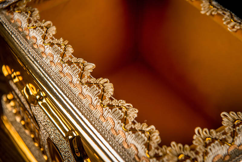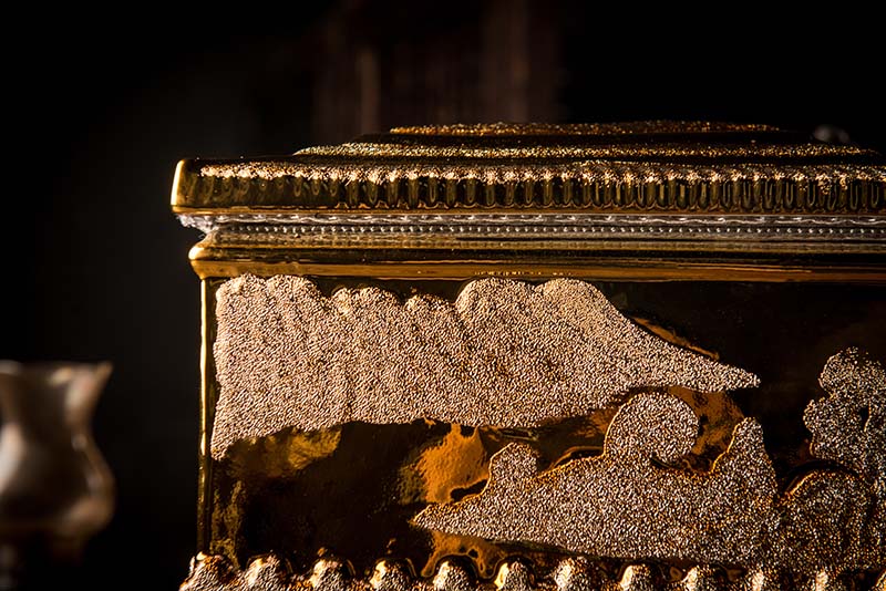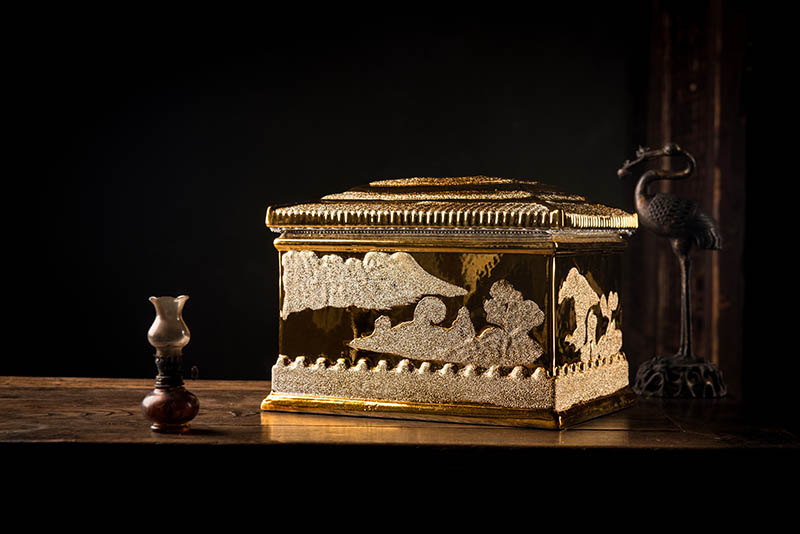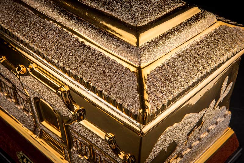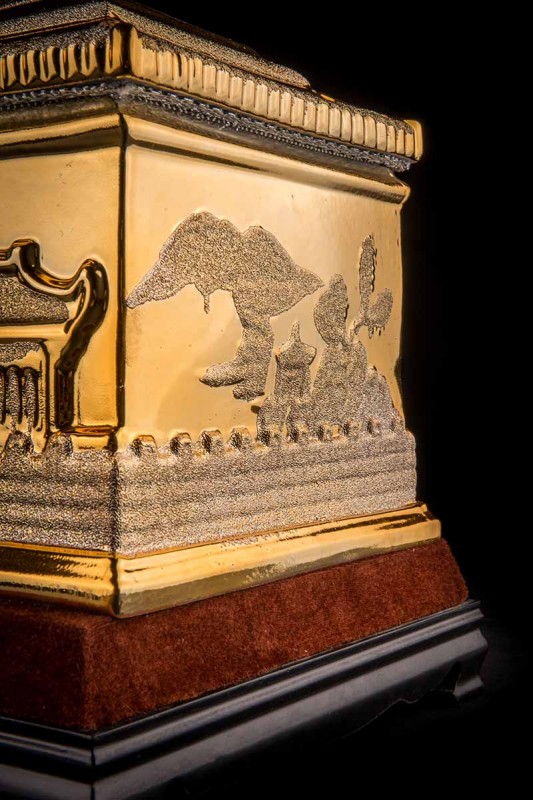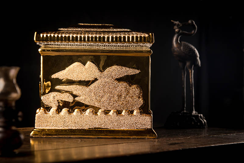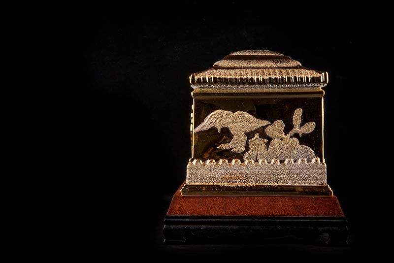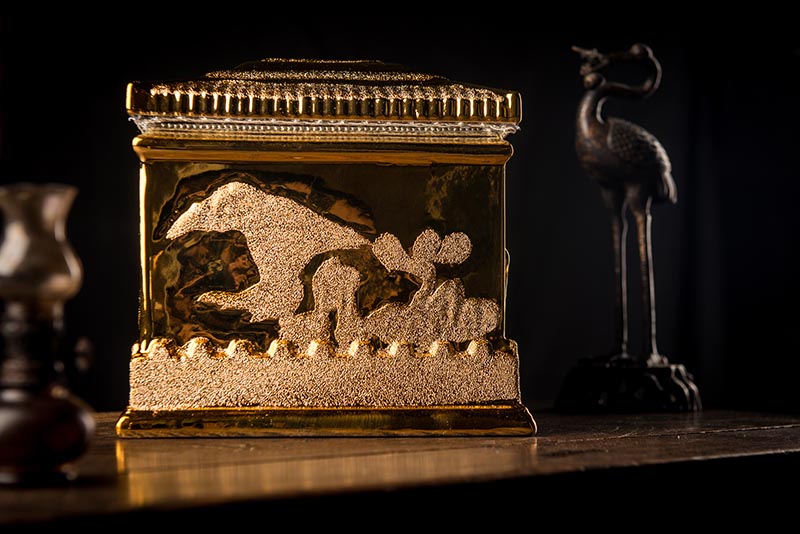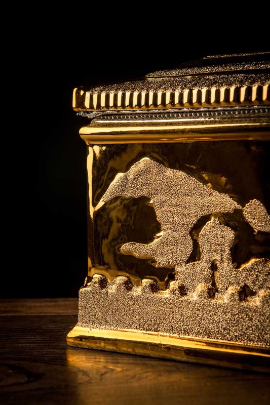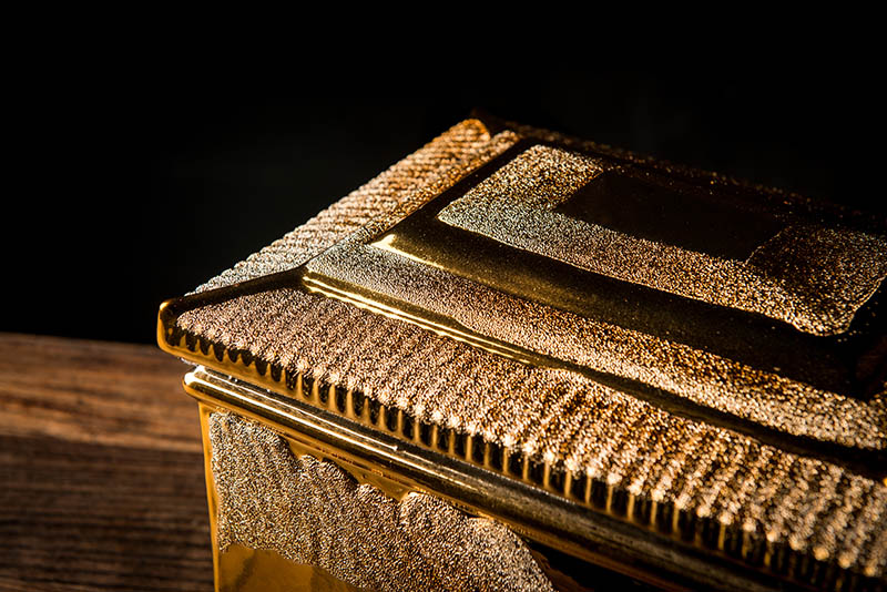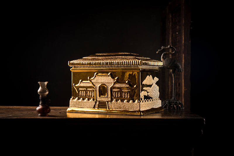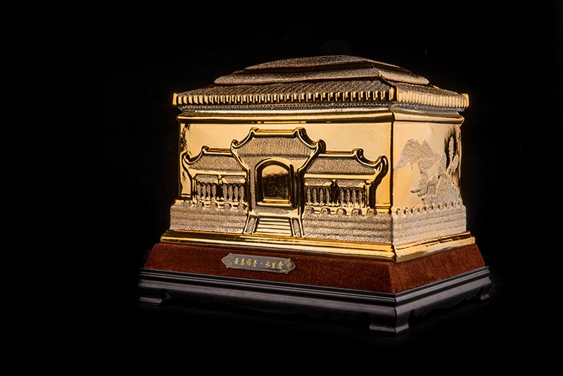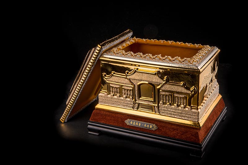 這款【磨砂金金寶盒】整體質(zhì)感出眾,看上去就是富麗堂皇,大氣,同樣是1300高溫煅燒,既有磨砂金的質(zhì)感,又有陶瓷那種光滑如肌的觸感,檔次,品質(zhì)自然而然就能很好的凸顯。這款【磨砂金金寶盒】正面是故宮造型,背面是山,寓意富麗堂皇,子孫后代今后事事有靠山,事事如意。尺寸:360x250x270mm(大)300x230x210mm(小)