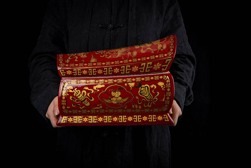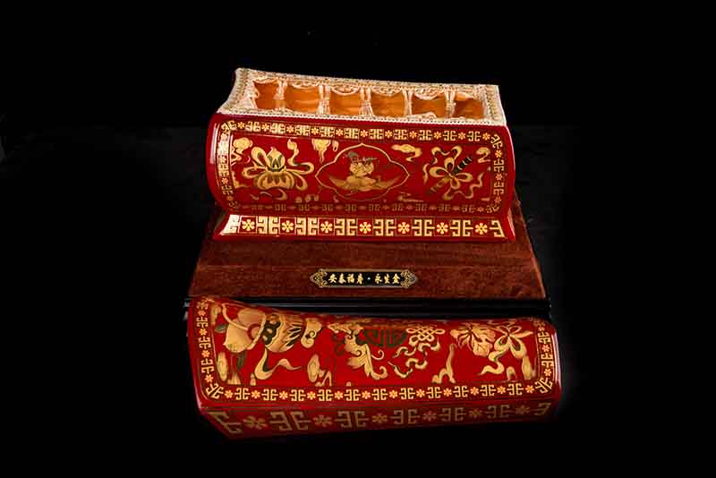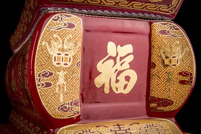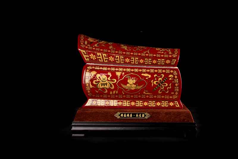 紅釉描金八寶圖
